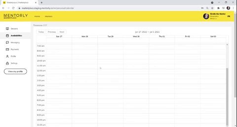 From your personal dashboard, click the Availability tab on the left-hand side. This will bring you to your Mentorly calendar.