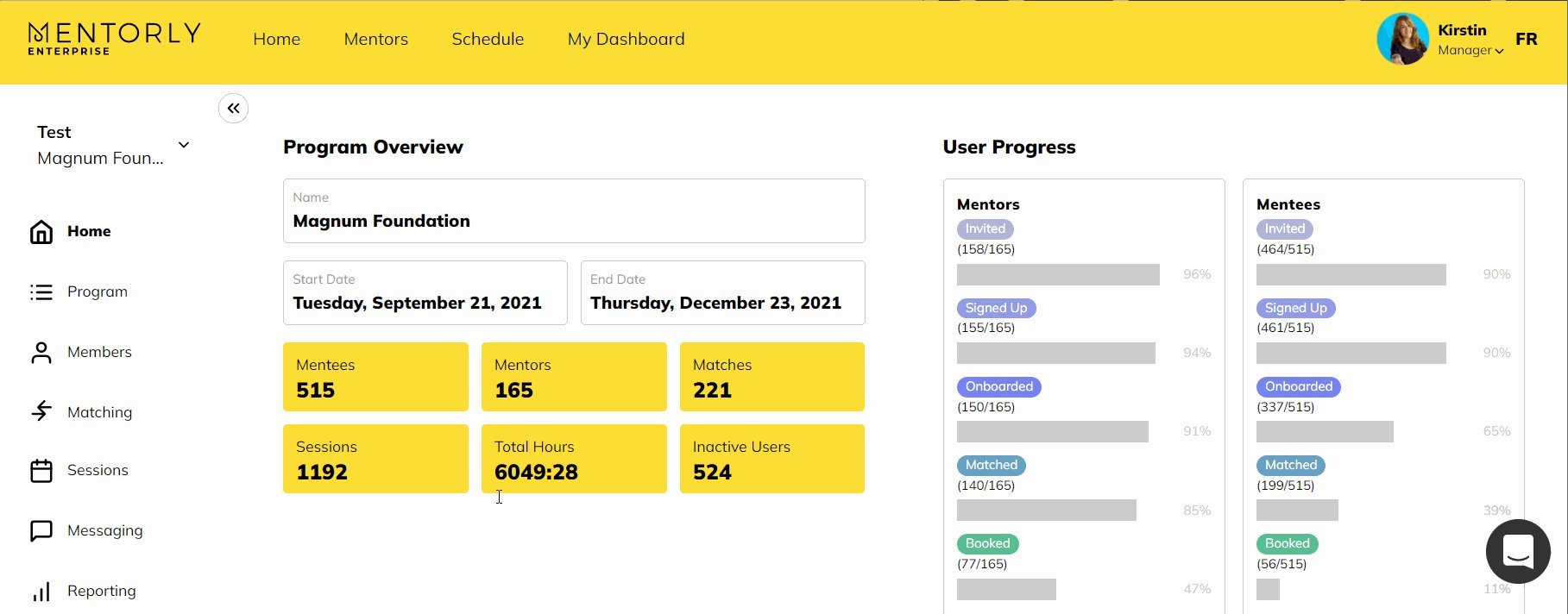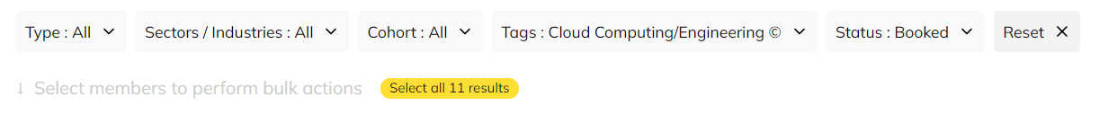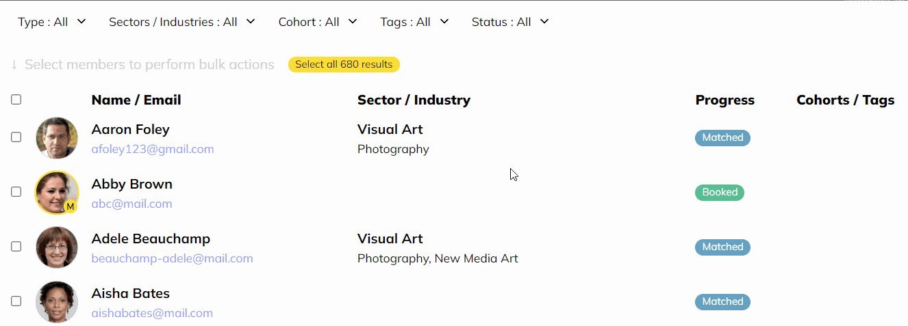 From the members tab, you're able to sort and combine filters by each mentor/mentee, cohorts, tags, status and more.