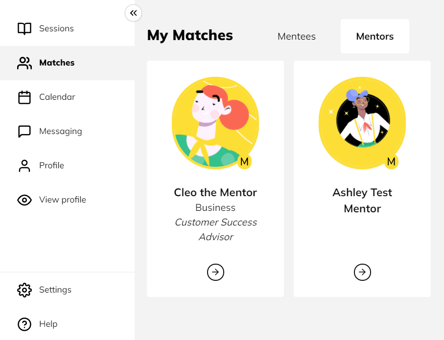 If you don't have the Matches tab, don't fret! That just means your program has enabled browsing the mentors in the program, so you can choose who interests you the most.
