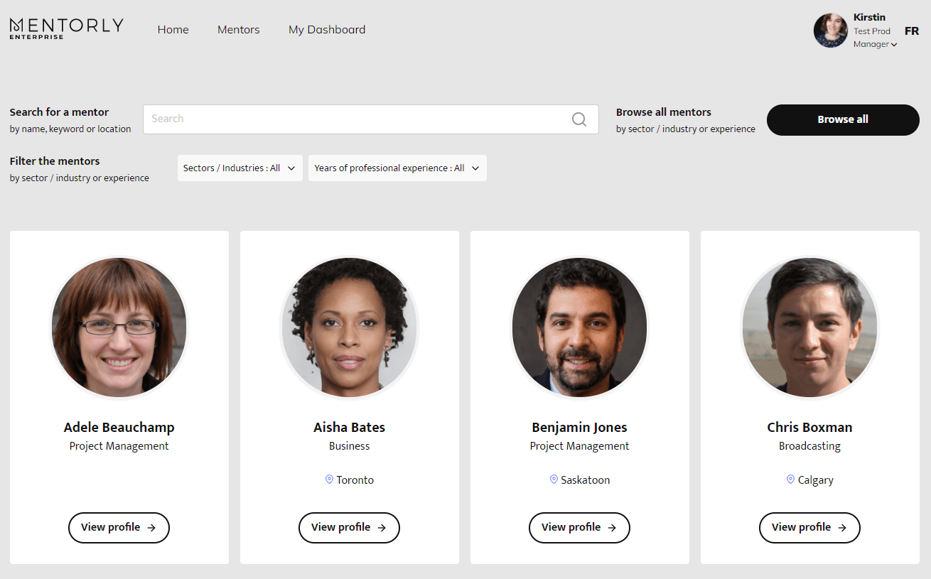 You can search for a specific mentor or keyword, filter by sector/industry and areas of expertise - or you can just browse all!