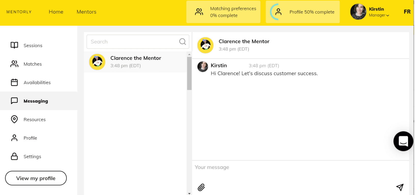 Good to note: You can also send attachments to your mentor by clicking the paper clip icon beside the text box.
