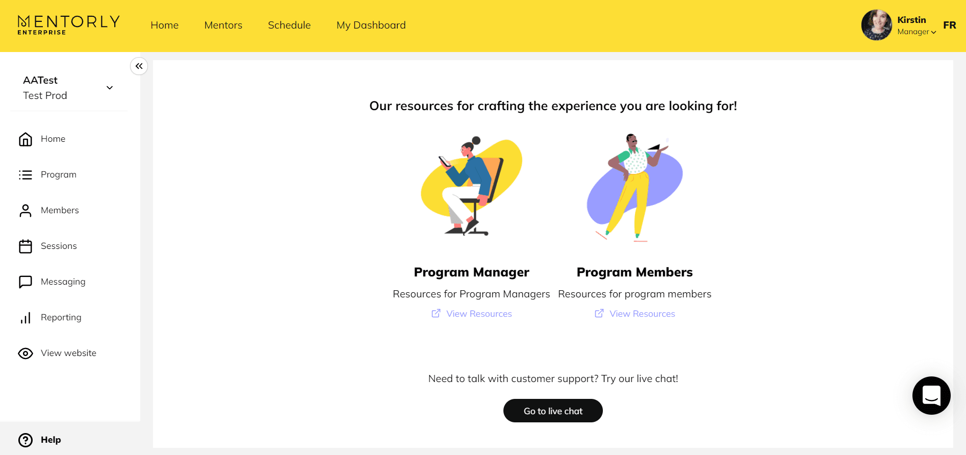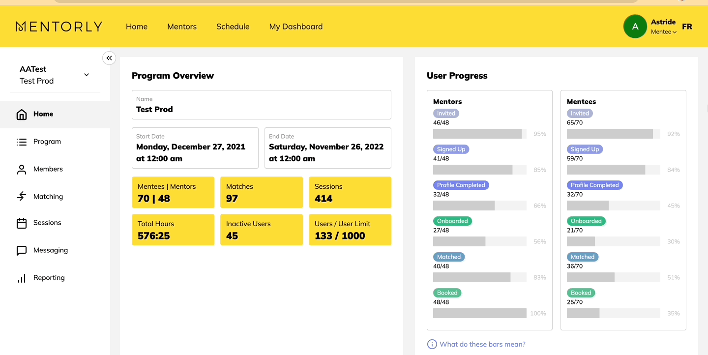 We recommend adding yourself to the program (from the Members tab) as either a mentor and mentee to explore what Mentorly has to offer members of your program.