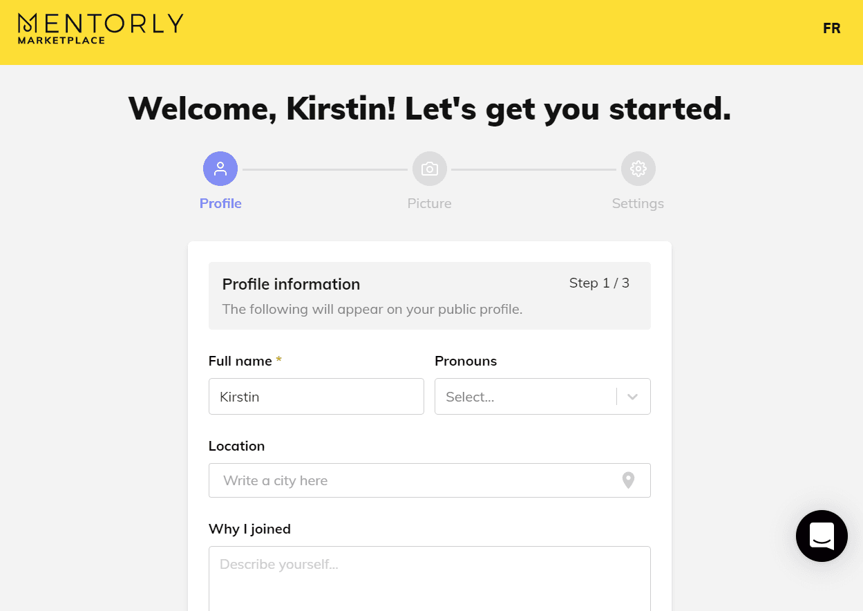 Once you've signed up, Mentorly will guide you through a few Onboarding steps that will allow you to start building your Mentee profile.