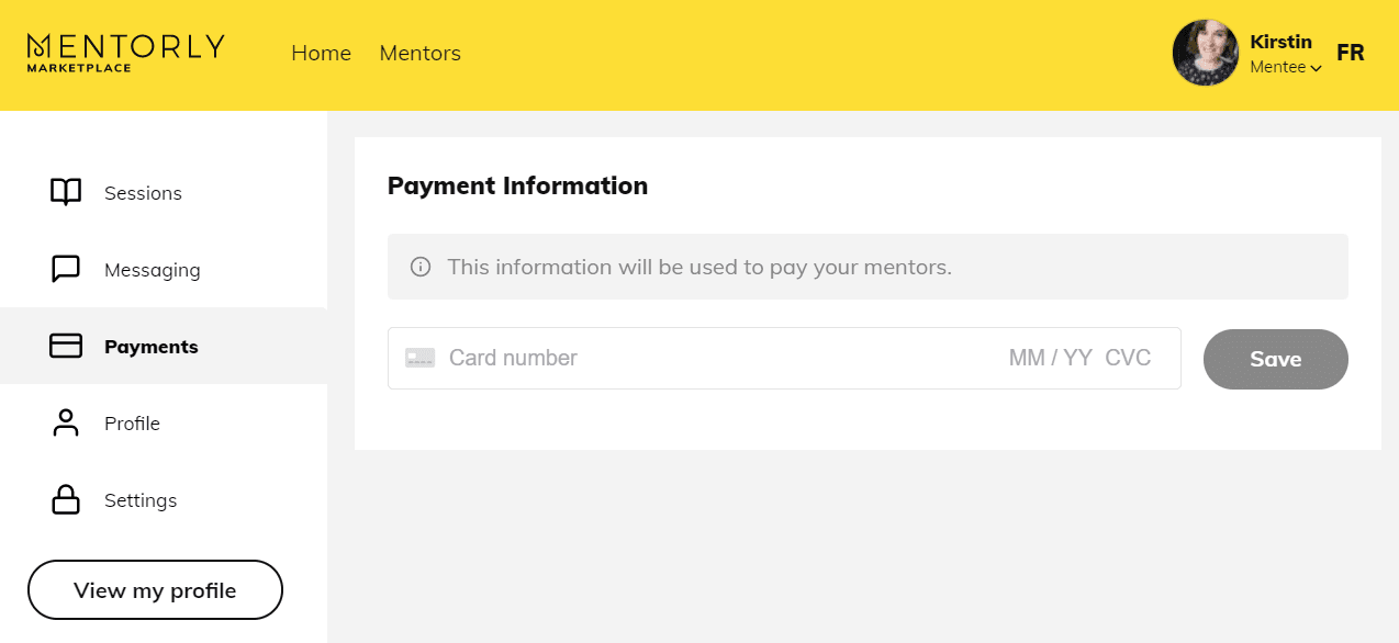 By accessing your Payments tab, you can add or modify your payment method. You will only be charged once a mentor accepts your booking request.