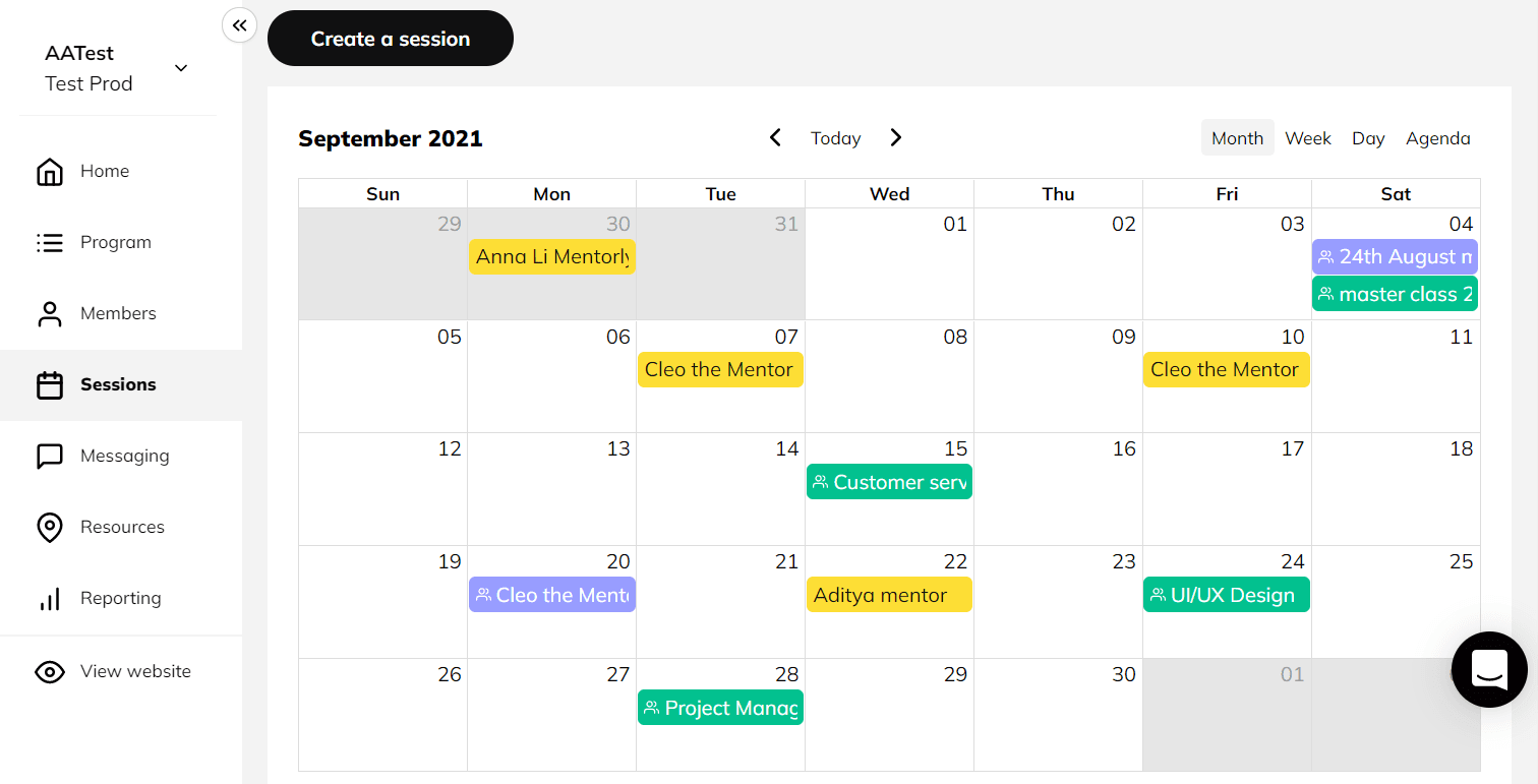 As a Program Manager, you can track all sessions that are taking place in your program, via a calendar overview on your Sessions tab.