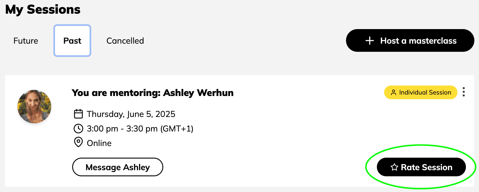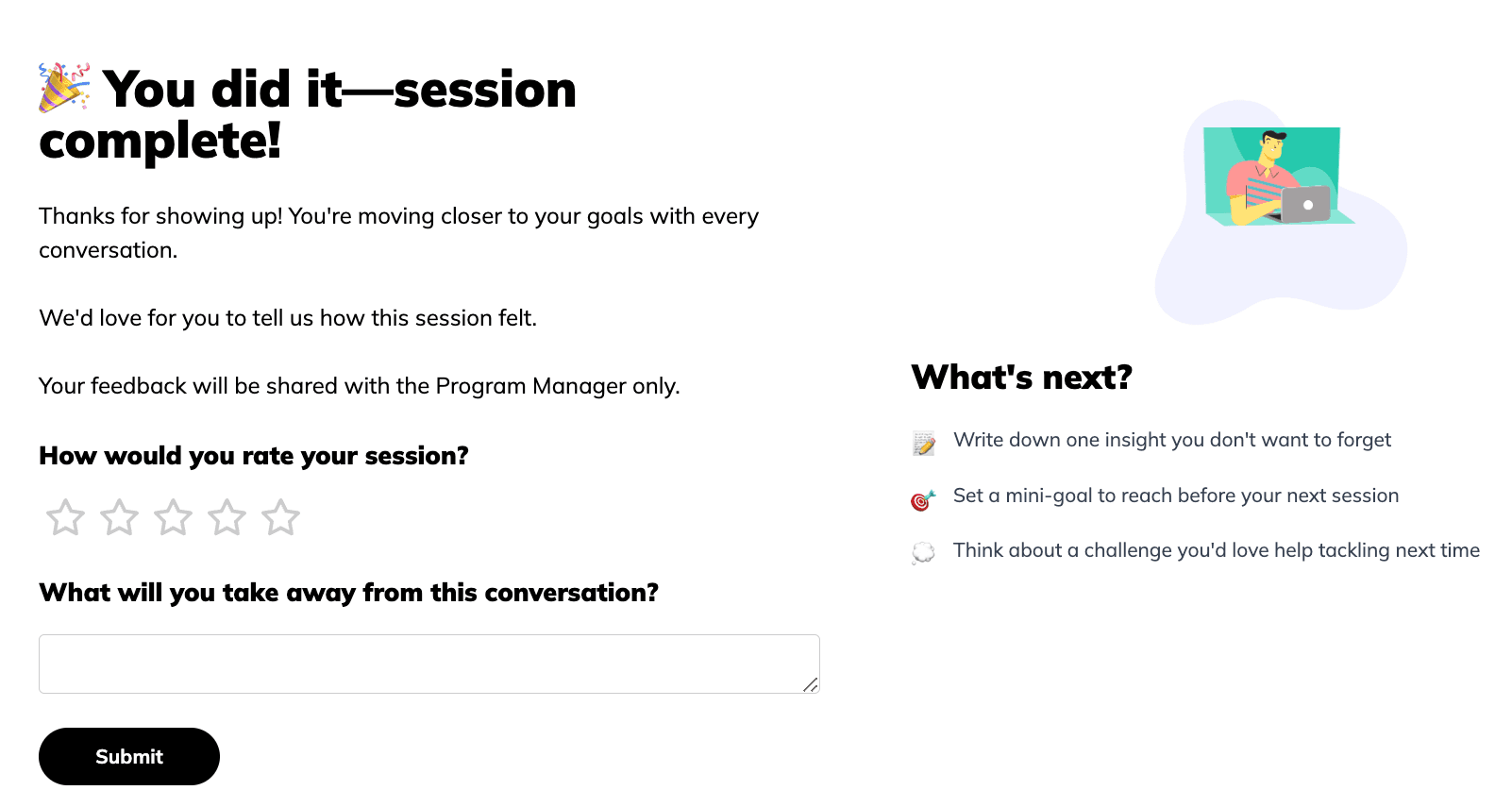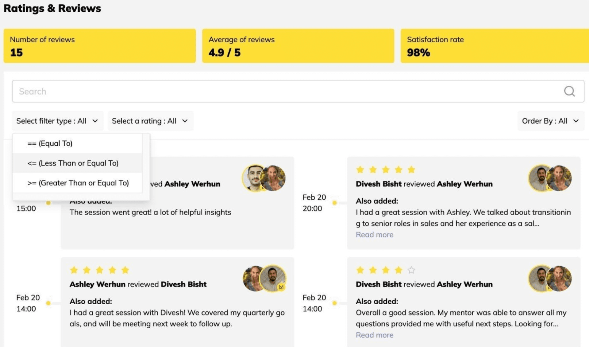 As long as Mentors and mentees synced their calendar with Mentorly, they can leave a review no matter where or how their session took place—in Mentorly, other virtual means or in person. We're meeting them where they are, so sharing feedback fits into their flow, not the other way around.