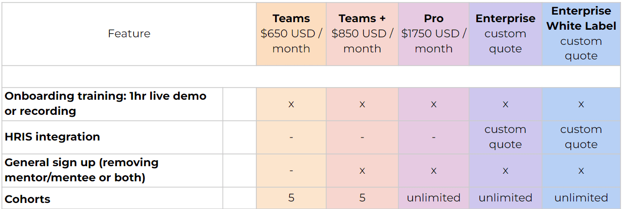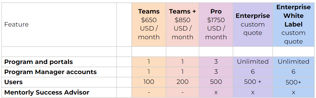 Users: Users are the roots of your mentorship program and they grow. No worries, reach out to us if you need more user space.