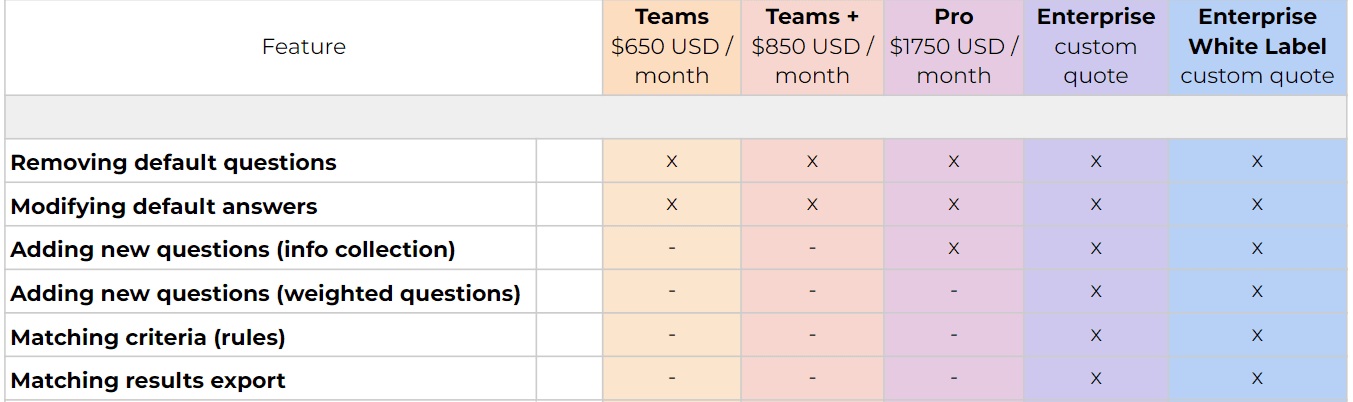 Matching Criteria (rules): You can create rules or filters for potential matching results based on answers.