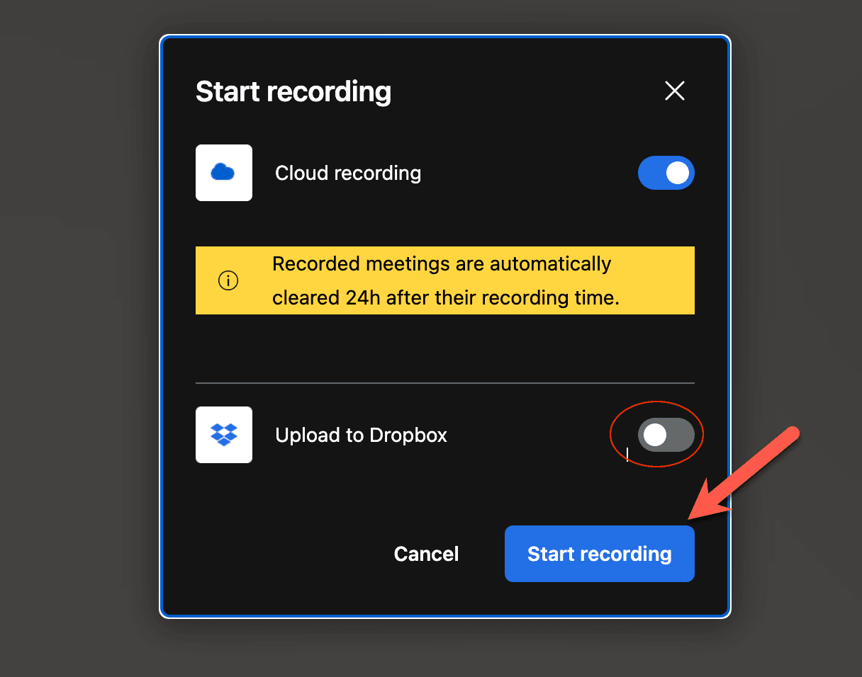 ℹ️ Please note: If you chose Dropbox as an option, you won't receive an email to download your recording.