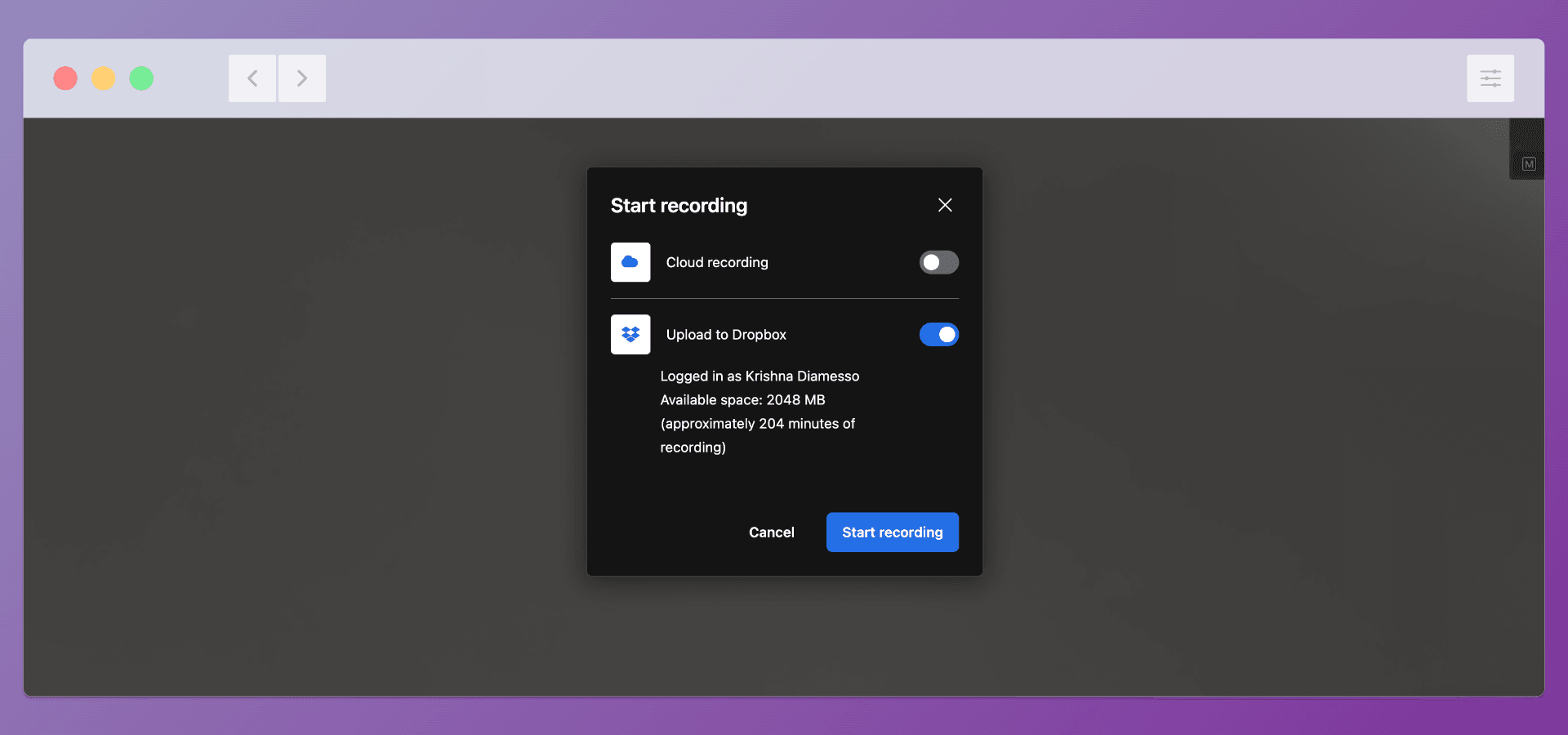 Log in to your Dropbox account and authenticate your account. Once it's done, click "Start Recording"