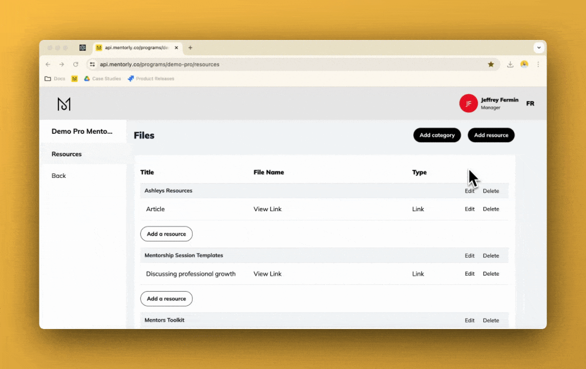 Resources is designed to help Program Managers create a content library in Mentorly that allows them to share valuable materials with participants.