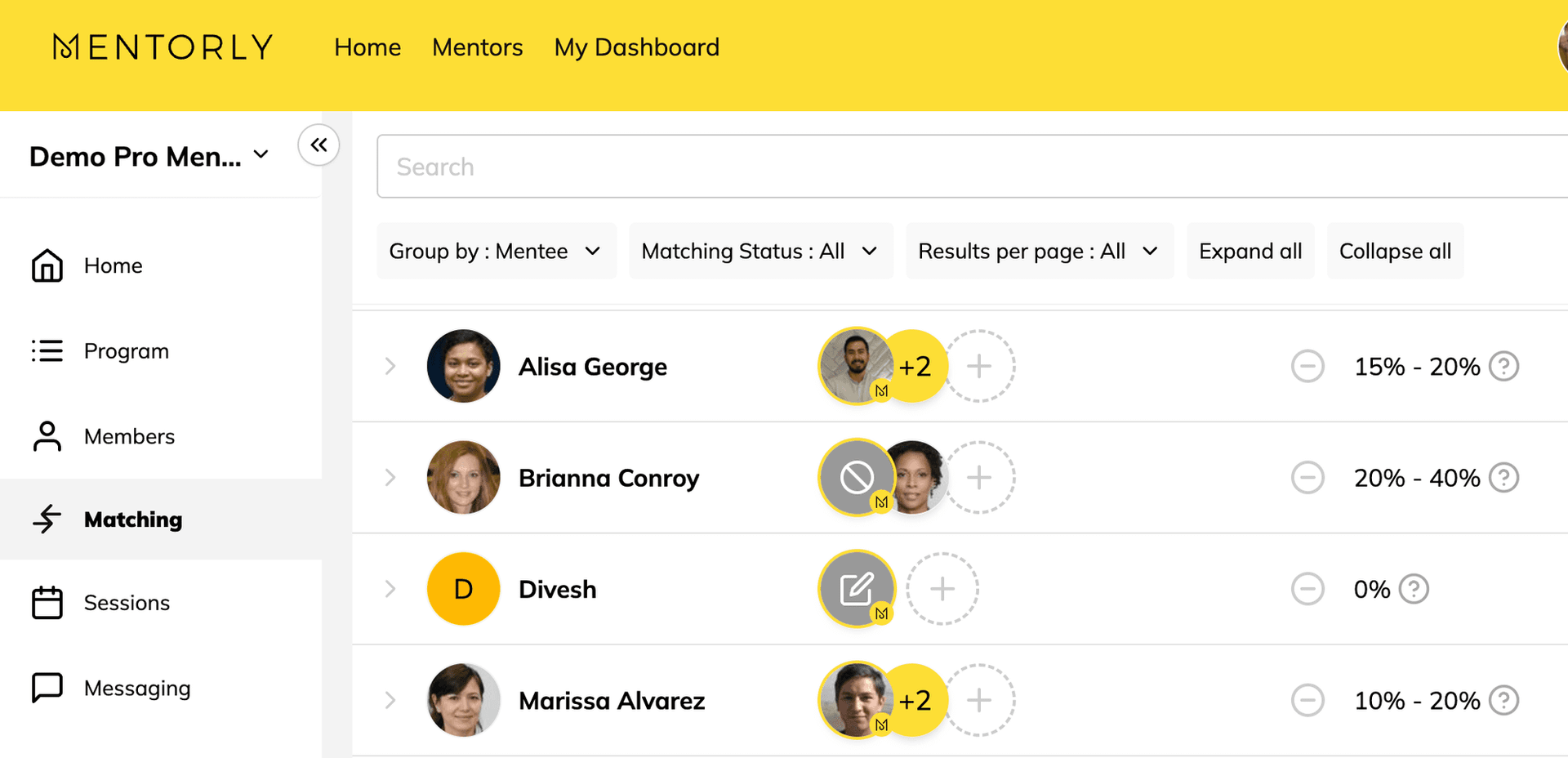 Matching is at the heart of your program, as it's where you can match mentors and mentees. Smart matching helps you create direct connections for your members to easily provide and access mentorship!