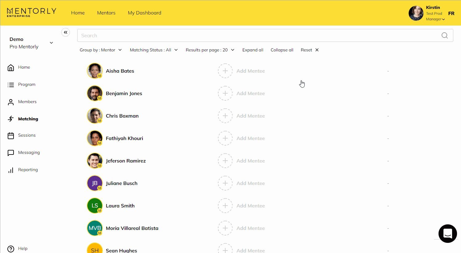 Work with your MSA or the Mentorly Support Team to set up a matching questionnaire.