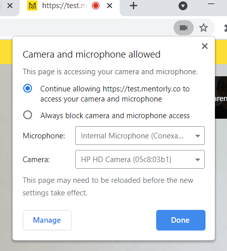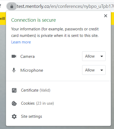 Be sure to allow access to your microphone/camera by accessing your permission settings of your browser.