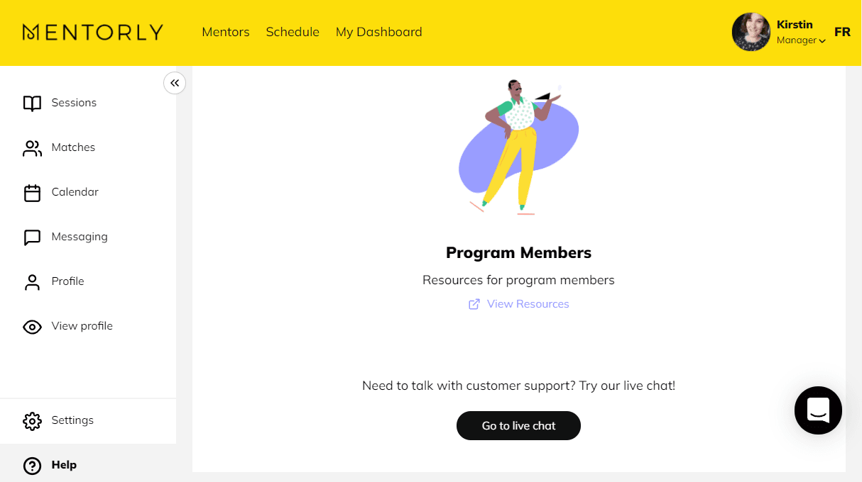 Simply click on the Help tab on the bottom left of your personal dashboard, and reach out to us on Intercom by clicking on 'live chat', or contact us at support@mentorly.co. We'll be happy to help!